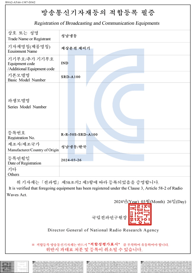 - SRD 시험인증 및 테스트 결과표